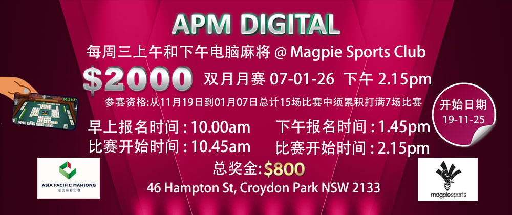 APM很高兴地宣布,我们将新的麻将比赛带回俱乐部。