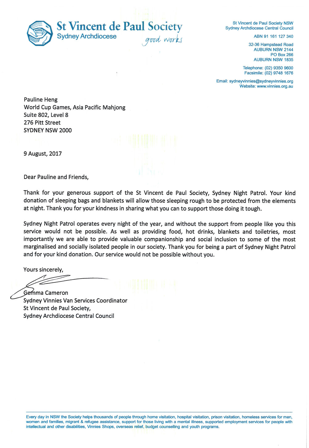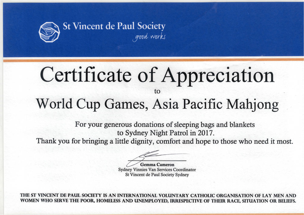 We collected a total of $620.00 from some of our players during the 1 week campaign to raise awareness on Blanket Shortage for People Sleeping Rough. Together with APM we have donated 48 sleeping bags, 15 blankets and 1 Queen size Quilt to St Vinnies. We will have some more news from St Vinnies coming soon. And thank you again for your generous support.